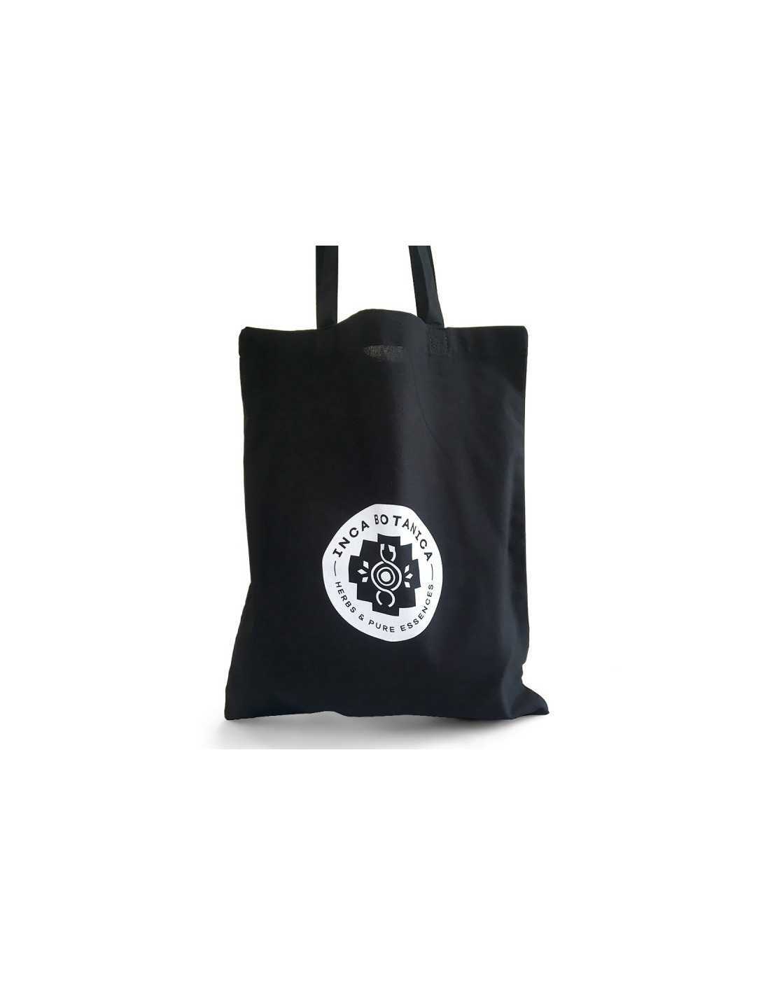 Zaregistrujte se a získáte 2 body/0,10 € (Každé utracené 1,00 € = 1 bod, 1 bod = 0,05 € sleva).Černá reklamní látková taška s dlouhými uchy a logem Inca Botanica.