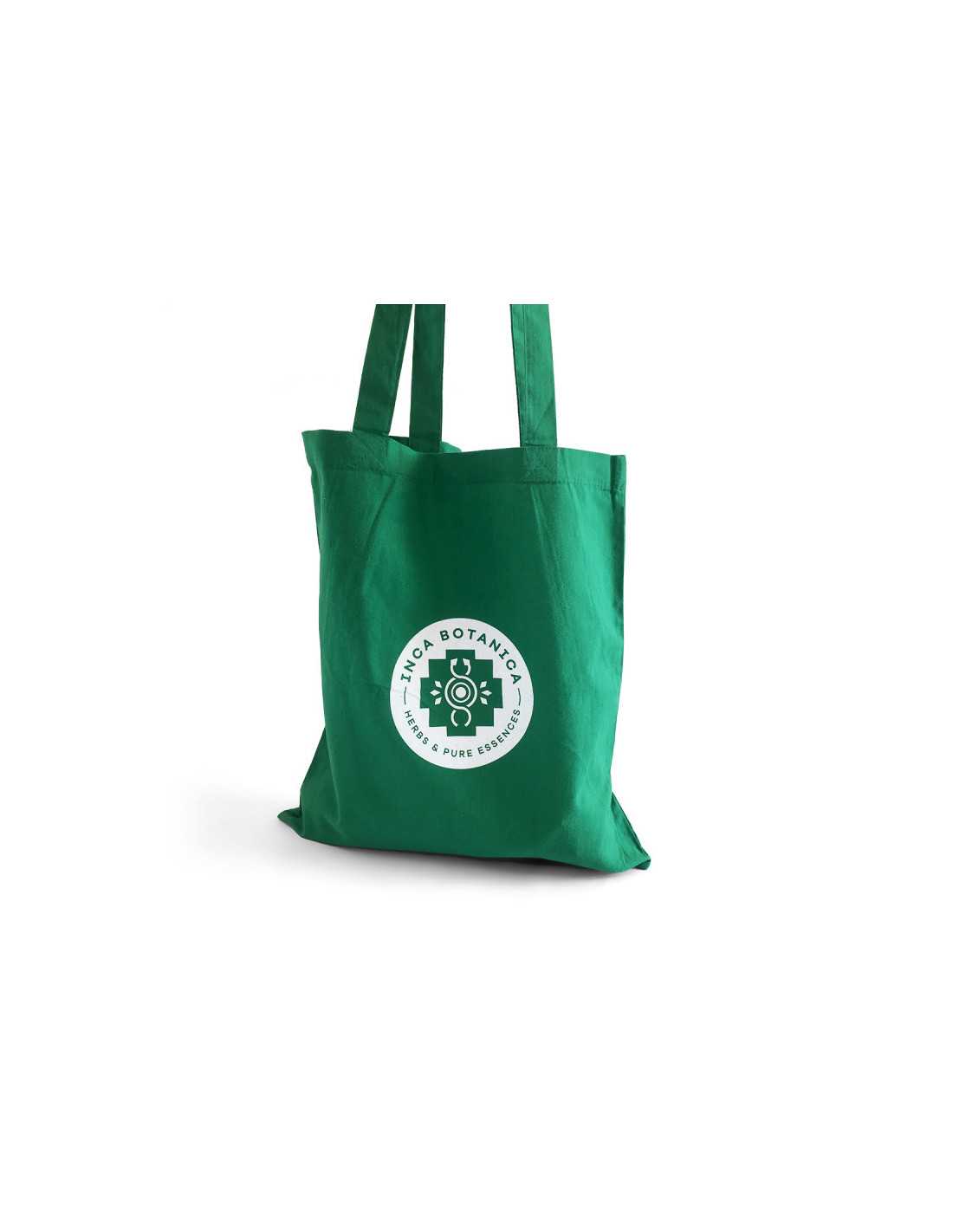 Zaregistrujte se a získáte 2 body/0,10 € (Každé utracené 1,00 € = 1 bod, 1 bod = 0,05 € sleva).Zelená reklamní látková taška s dlouhými uchy a logem Inca Botanica.
